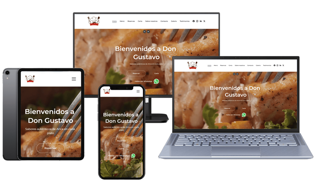 Esta página diseñada para restaurantes potencia la identidad gastronómica de cualquier negocio, combinando elegancia visual con una navegación fluida y orientada a conversiones. Presenta de forma moderna el menú, incluye una sección optimizada para reservas, una galería de platos irresistibles y una experiencia móvil impecable. Es la opción ideal para restaurantes que buscan transmitir profesionalismo, estilo y confianza desde el primer clic.
